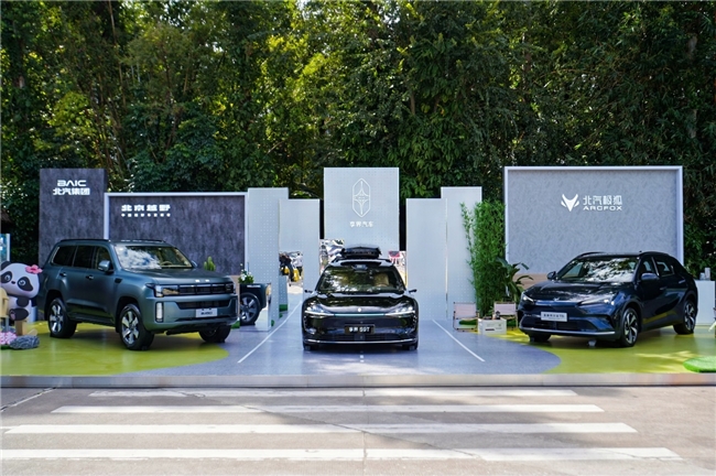 车展开幕当天,由北汽集团独家冠名赞助的《熊猫奇遇记》第二季节目开播仪式在长隆野生动物世界举行。该节目由中国大熊猫保护研究中心指导,是中国首档大熊猫文化纪实观察节目,北汽集团已经连续两季赞助拍摄,北京越野BJ30旅行家本季全程为大熊猫的探访拍摄保驾护航。北京越野、北汽极狐产品充分结合《熊猫奇遇记》IP和长隆IP,熊猫“奇奇”、小狐同学作为车机助手,帮助车主导航、陪伴车主聊天,车主可以通过绿色出行的碳积分在车机系统里兑换“竹子”喂养奇奇,并获得由北京绿色交易所颁发的、北汽车主专属的“碳护照”。车展期间,北京越野、北汽极狐、享界汽车的产品在长隆野生动物世界进行展示,游客们可以驾驶北汽产品在园区内自驾游览,在萌趣之旅中深入体验北汽产品。